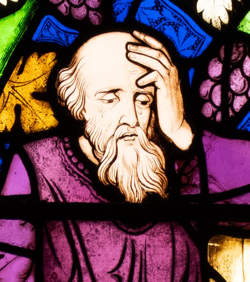Jechonias, the figure shown in the centre light with his hand on his head, was king but was never crowned, being taken into exile at Babylon