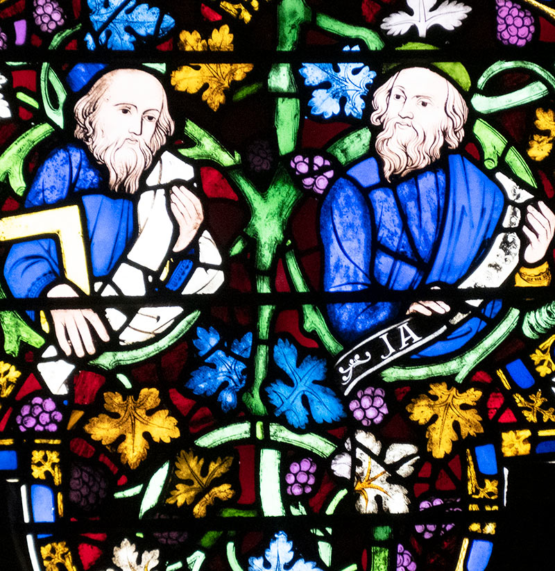St Joseph, the foster father of Jesus, is at the top on the left and is shown holding a carpenter's square. Next to him is Jacob, who was his father.