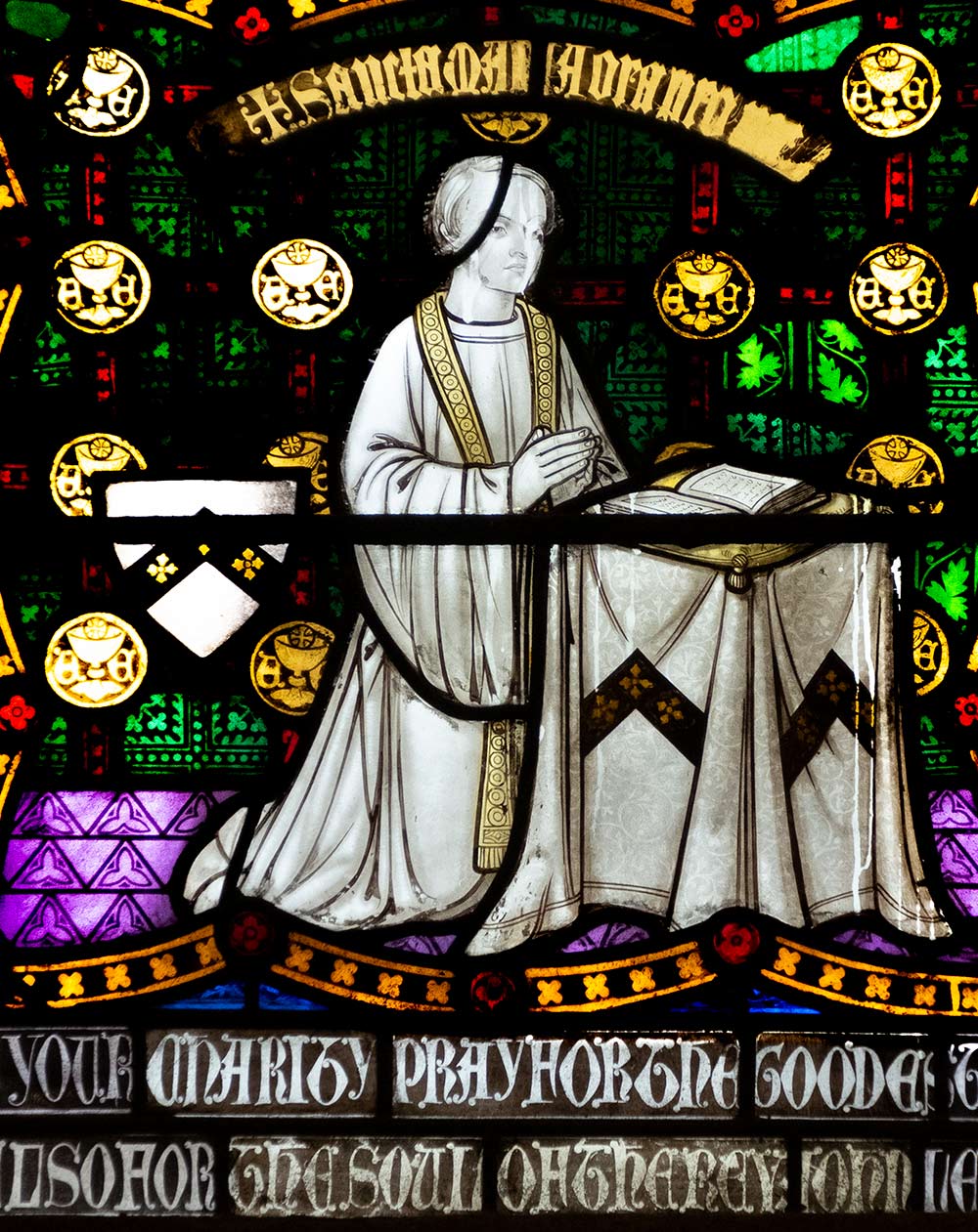Fr John Eyre who was a priest working in Newcastle before the church was built. His body is buried under the plain slab among the tiles on the floor.
